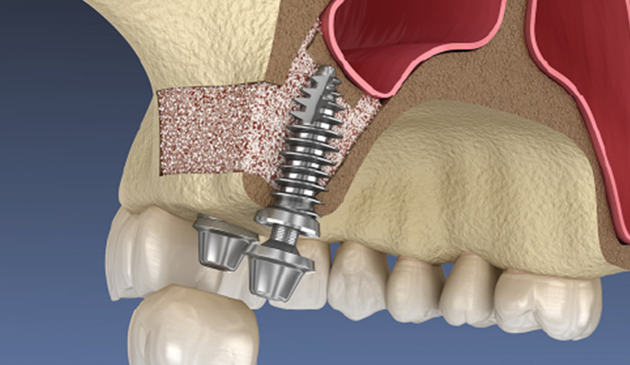 サイナスリフトは、その空洞部分の膜を丁寧に持ち上げて、できたスペースに人工骨を補填することで、インプラントを支えるだけの骨を確保する治療です。