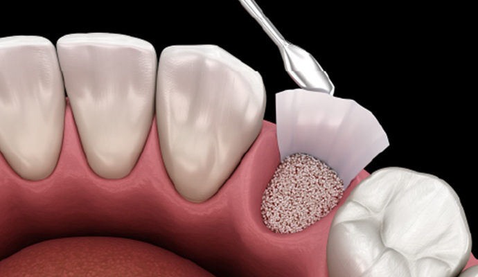 歯ぐきの中にある骨の厚みや高さが足りないと、インプラントをしっかり支えることができません。そうしたケースで活用されるのが、GBR(Guided Bone Regeneration)と呼ばれる骨の再生を促す治療です。