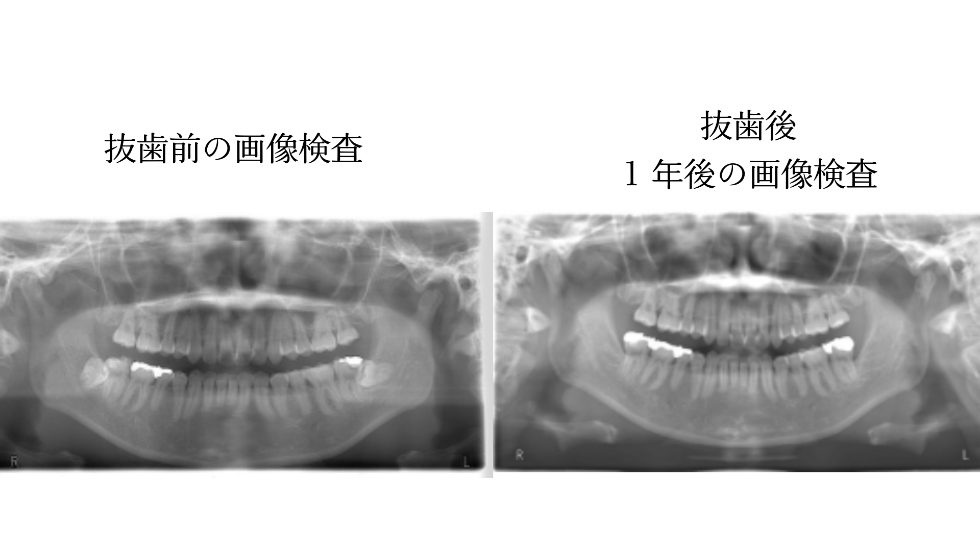 大学病院では1ヶ月ほどで口腔外科の診療が終了することが多いですが、当院では専門医が常勤しているため、長期的な経過観察が可能です。 抜歯から1年後には、画像検査による最終評価も行います。