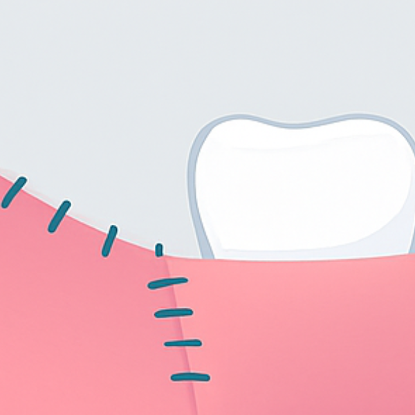 開いた歯茎をもとに戻すため、血餅を維持するため、糸で縫合します。