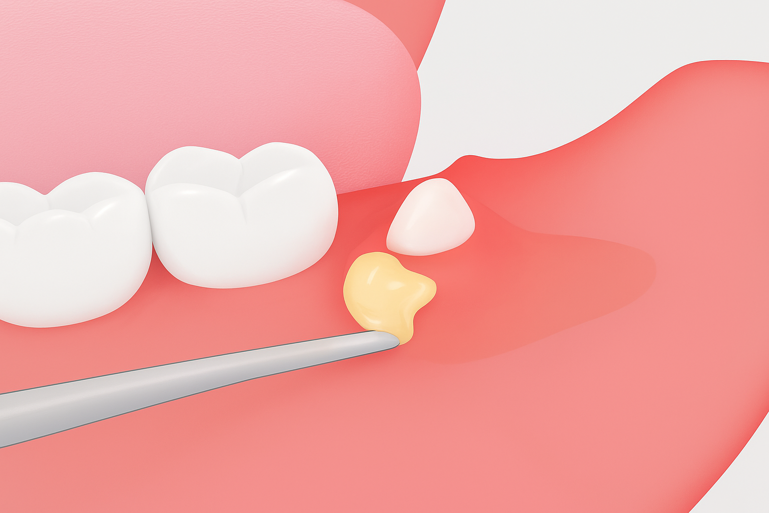 親知らずが斜めに生えると、隣の歯とのすき間に細菌がたまり、炎症が起こることがあります。これを智歯周囲炎と呼び、繰り返すと慢性的な腫れや痛みを引き起こします。