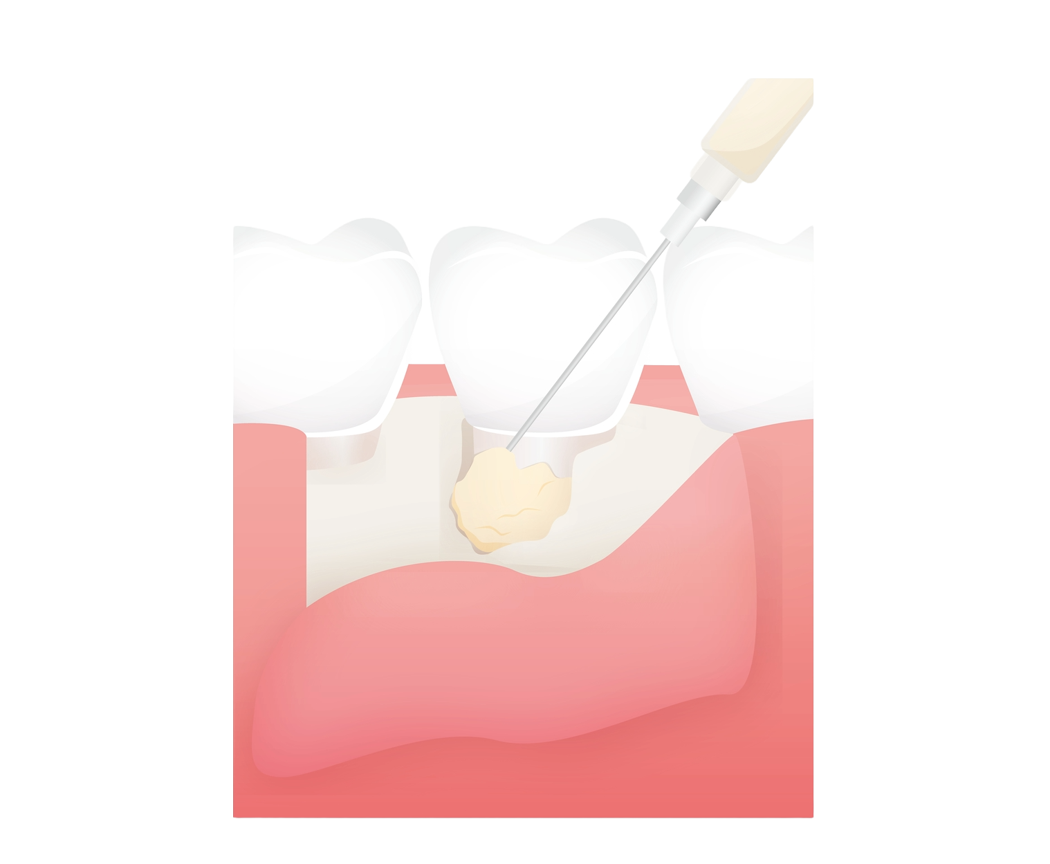 深くなった歯周ポケットの奥に入り込んだ歯石を、専用の器具を使って丁寧に取り除きます。